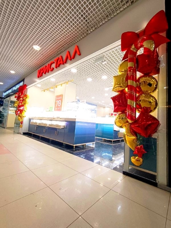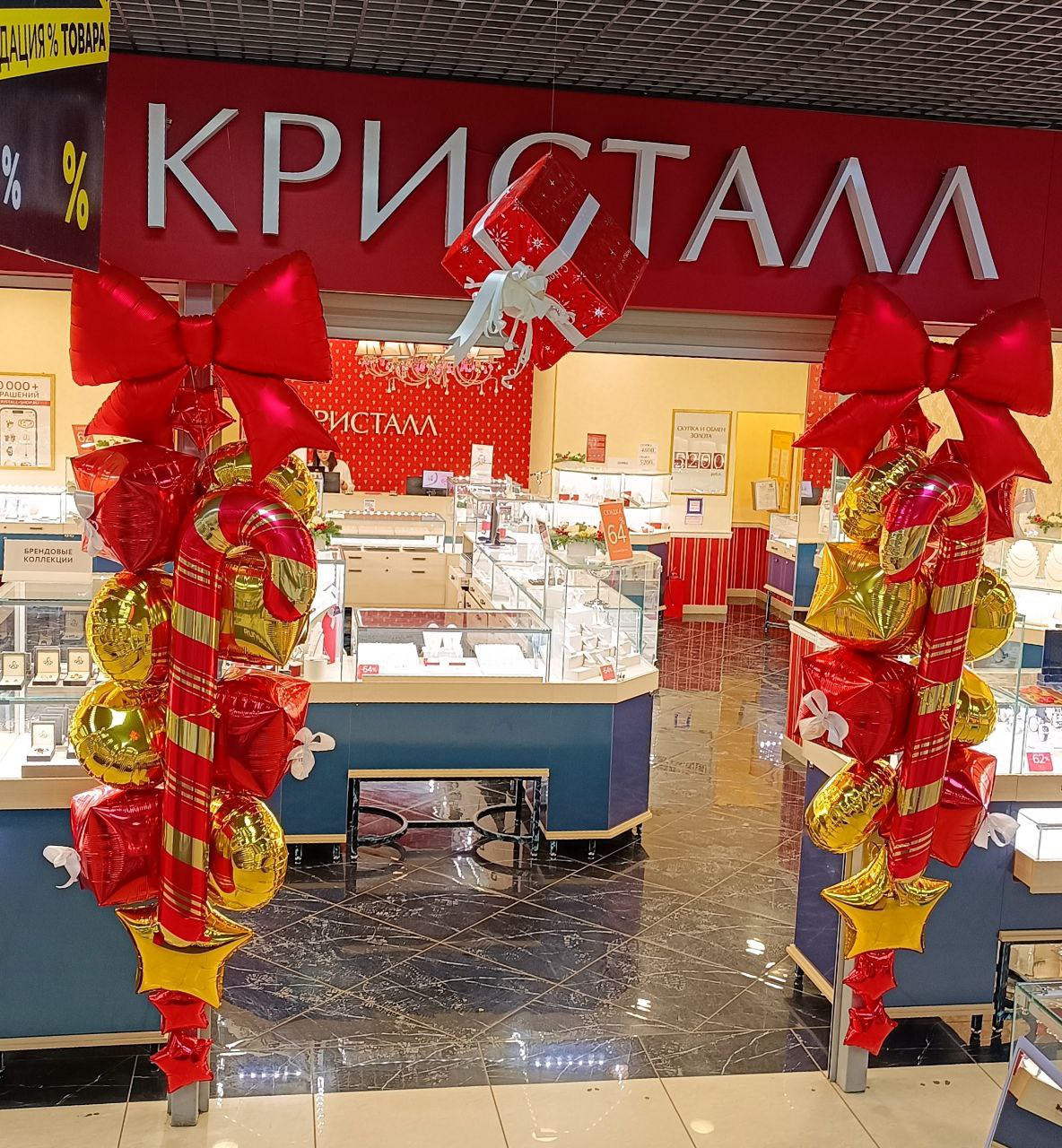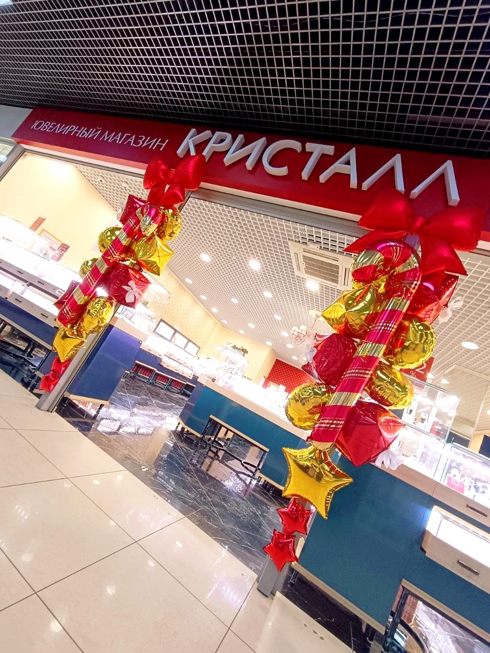 Оформление новогодними гирляндами из тематических фольгированных фигур.
